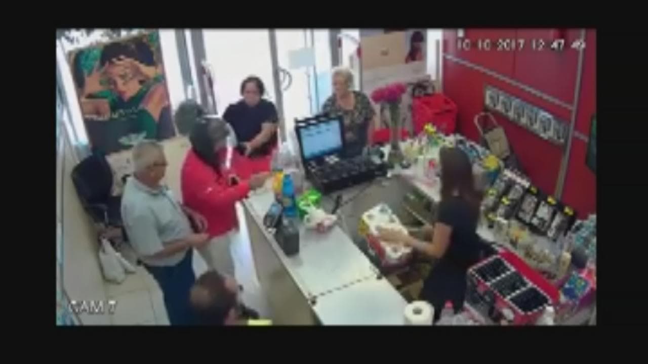 El videíto: Una señora evita a carterazos un atraco a una farmacia en España