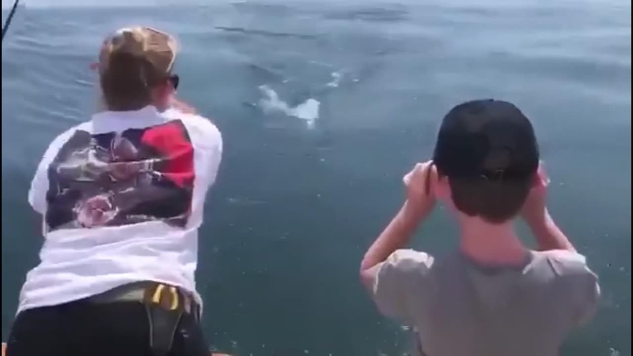 Todo ocurrió en Cape Cod Bay, Massachusetts, cuando varios miembros de una familia pasaban un buen rato pescando. Uno de ellos grabó el susto en su celular.