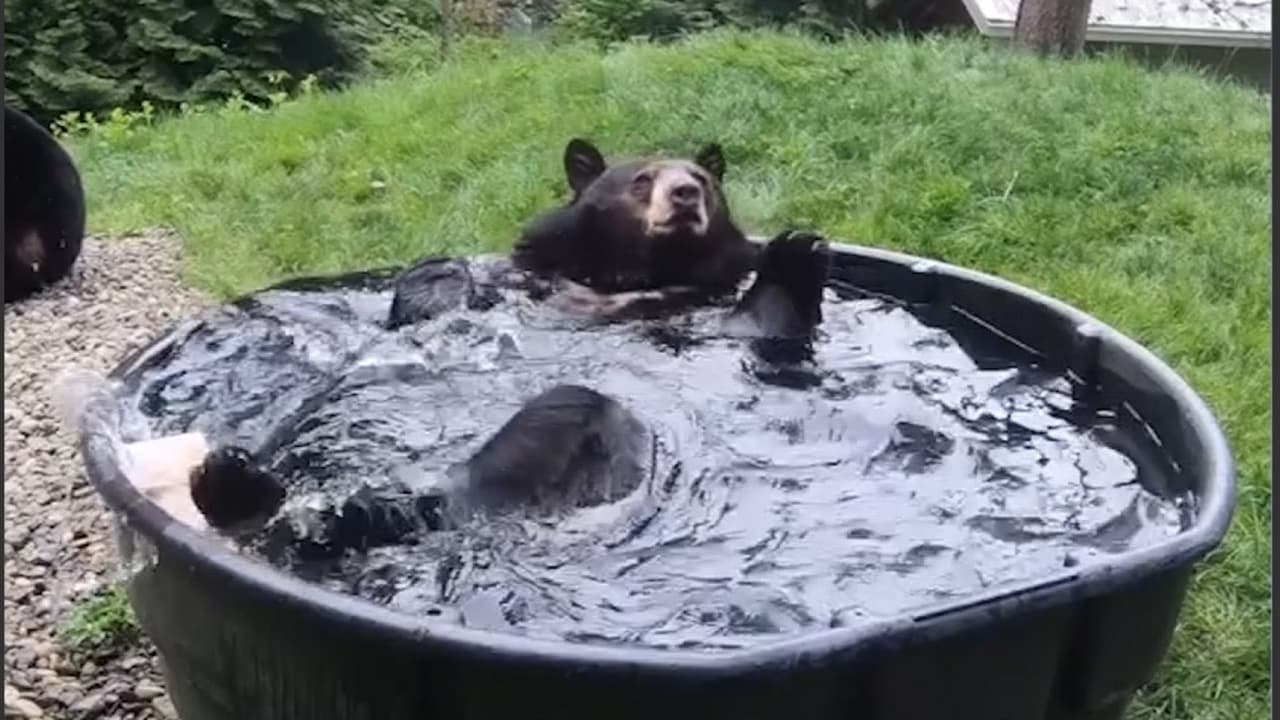 Esperamos que tu día sea tan feliz como este oso que chapucea en una bañera