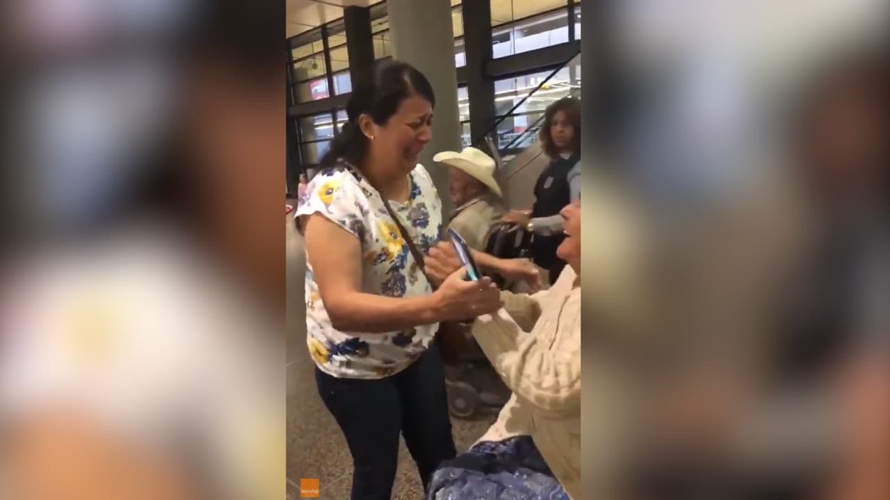 La hija de María Elena grabó el emotivo momento del reencuentro en el aeropuerto de Seattle. Las imágenes muestran a su madre preguntarle si aún la reconocen.