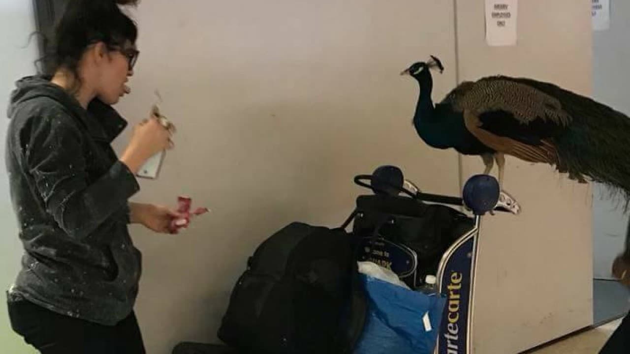 Esta mujer intentó abordar el avión con un pavo real pero se lo impidieron