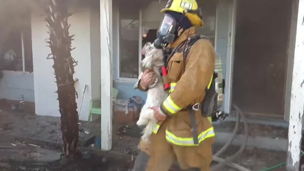 Este bombero le salvó la vida a un perro ahogado por el humo