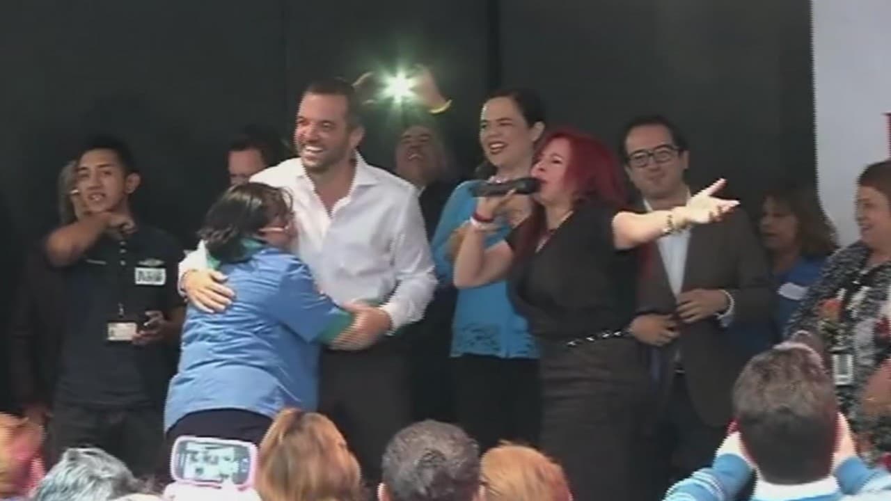 En la fiesta para las trabajadores de limpieza los senadores Jorge Luis Lavalle y Fernando Yunes bailaron con algunas de las empleadas.