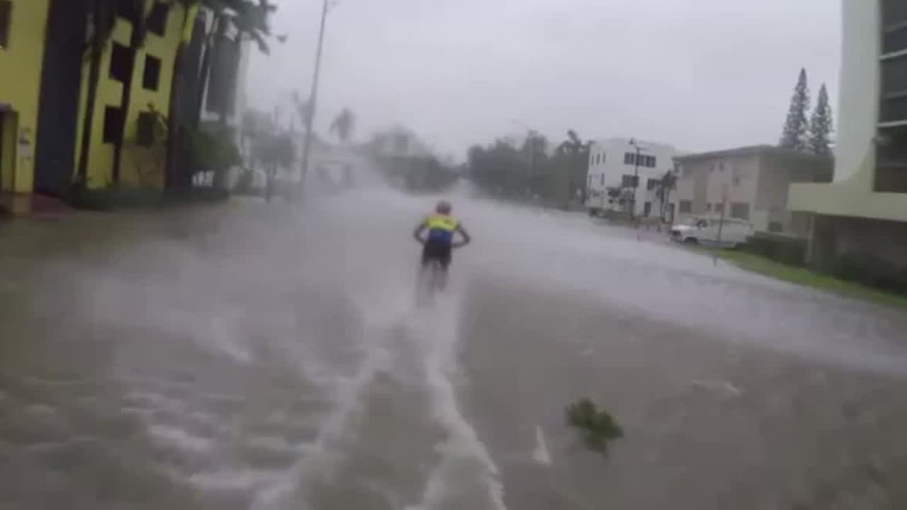¿Loco o valiente? Este ciclista recorrió las calles de Miami durante el huracán Irma