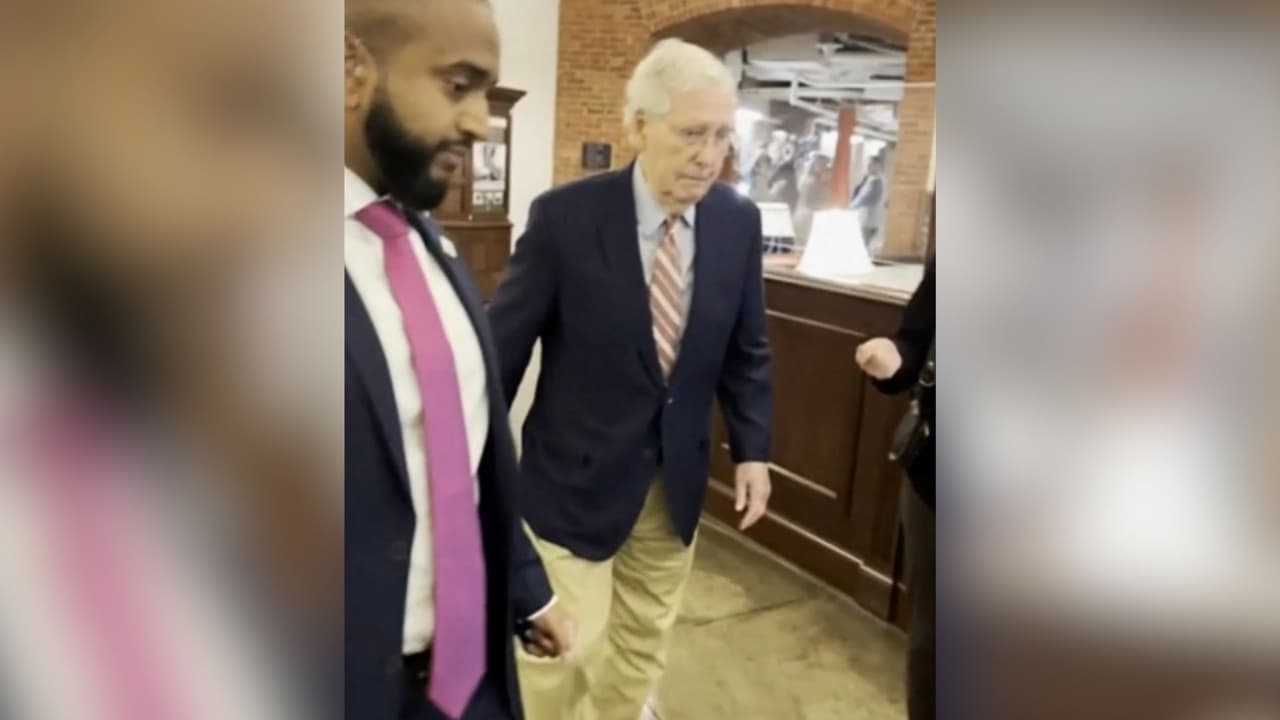 En video quedó registrado el momento en que el senador republicano Mitch McConnell, de 83 años, se desplomó en un pasillo del Capitolio mientras dos personas lo cuestionaban sobre las acciones de ICE. Aunque se mostró desorientado, logró levantarse con ayuda de sus acompañantes. Este fue el momento.