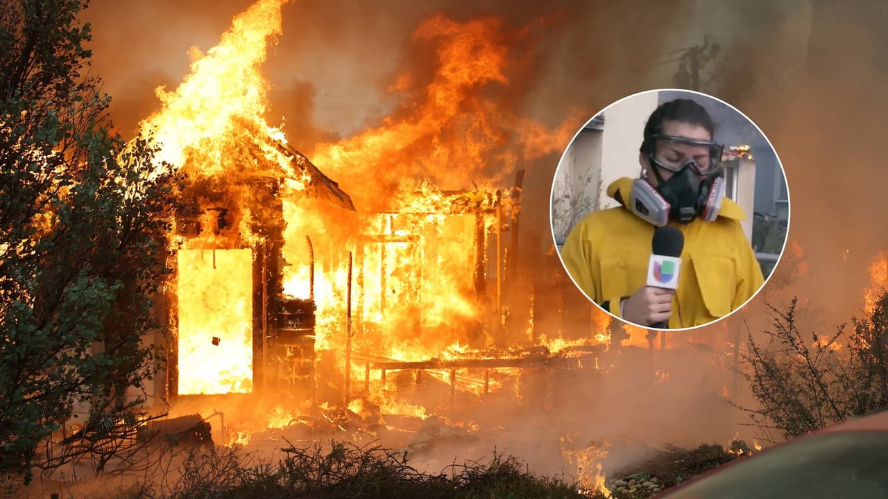 1. El momento en que una periodista de Univision rompe en llanto al ver el barrio de sus padres en llamas por los incendios de California