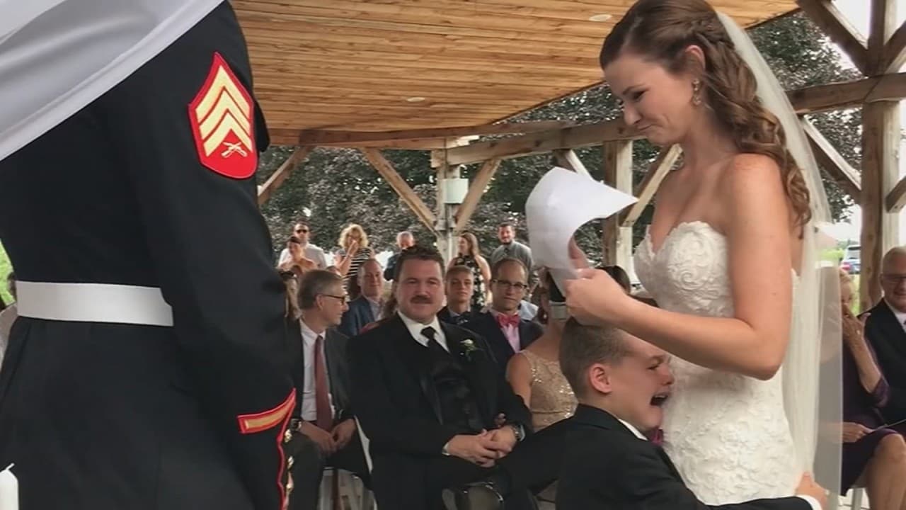 Emily Leehan decidió dedicar sus votos nupciales al pequeño hijo de su pareja en pleno altar. Las lágrimas de Gage Newville no tardaron en aparecer.