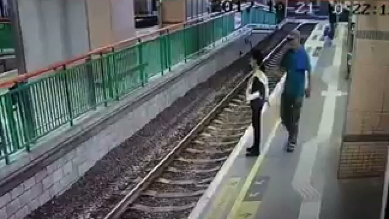 Un hombre empuja sin razón aparente a una mujer a las vías del tren