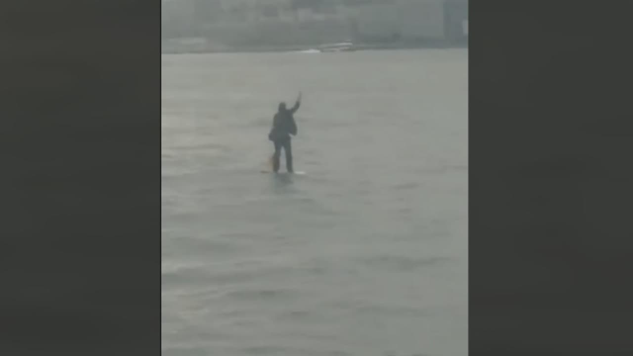Eunice Rivers estaba yendo a trabajar en un Ferry cuando observó a un hombre vestido con traje sobre el río Hudson. Scott Holt dijo que decidió hacer paddleboard para ahorrar algo de dinero y además aseguró haber llegado a su reunión de la mañana a tiempo.