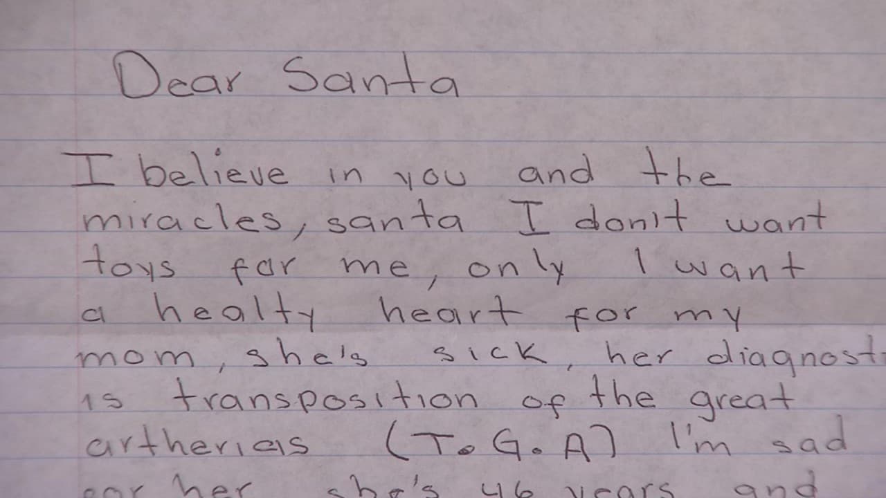Un niño hispano le pide a Santa Claus un corazón para su mamá
