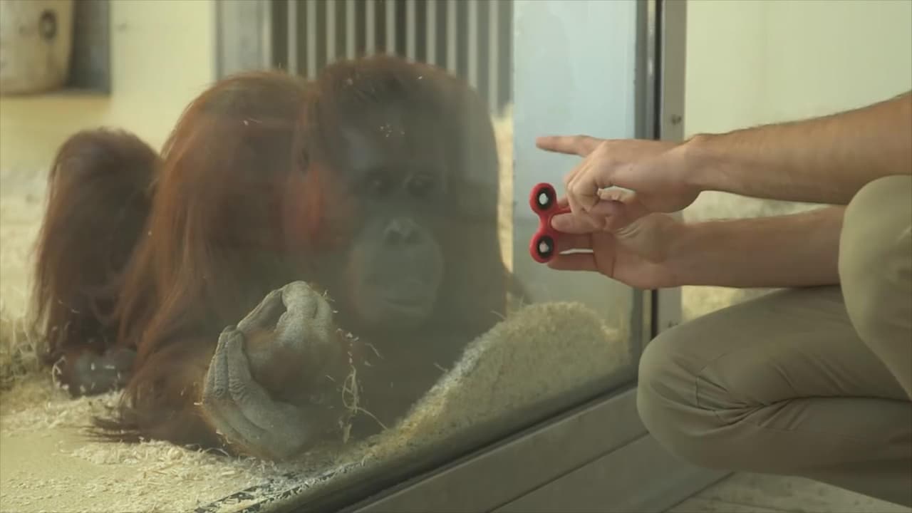 Un orangután prueba el adictivo 'fidget spinner' y esto es lo que pasó