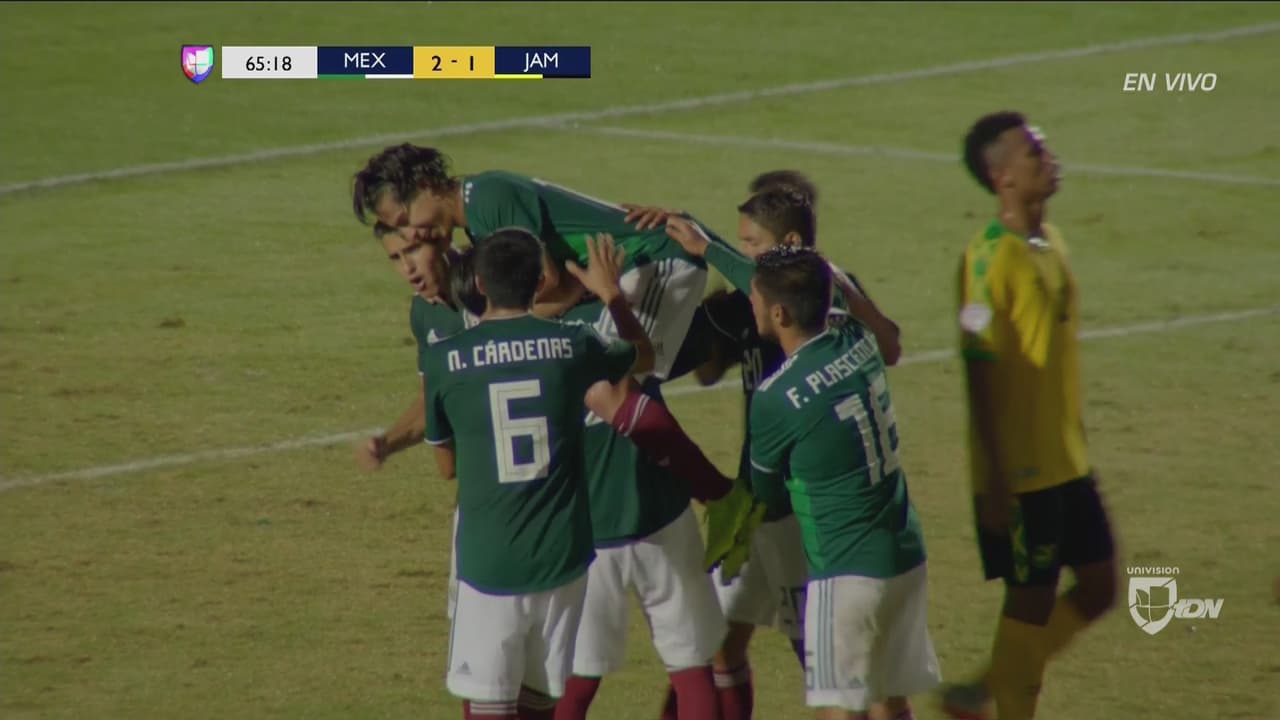 Fue a través de una jugada y centro de Diego Lainez, que Daniel López intento conectar con el esférico pero fue Javain Brown, defensa caribeño, quien terminó poniendo el esférico en meta propia para el 1-0 a favor de México.