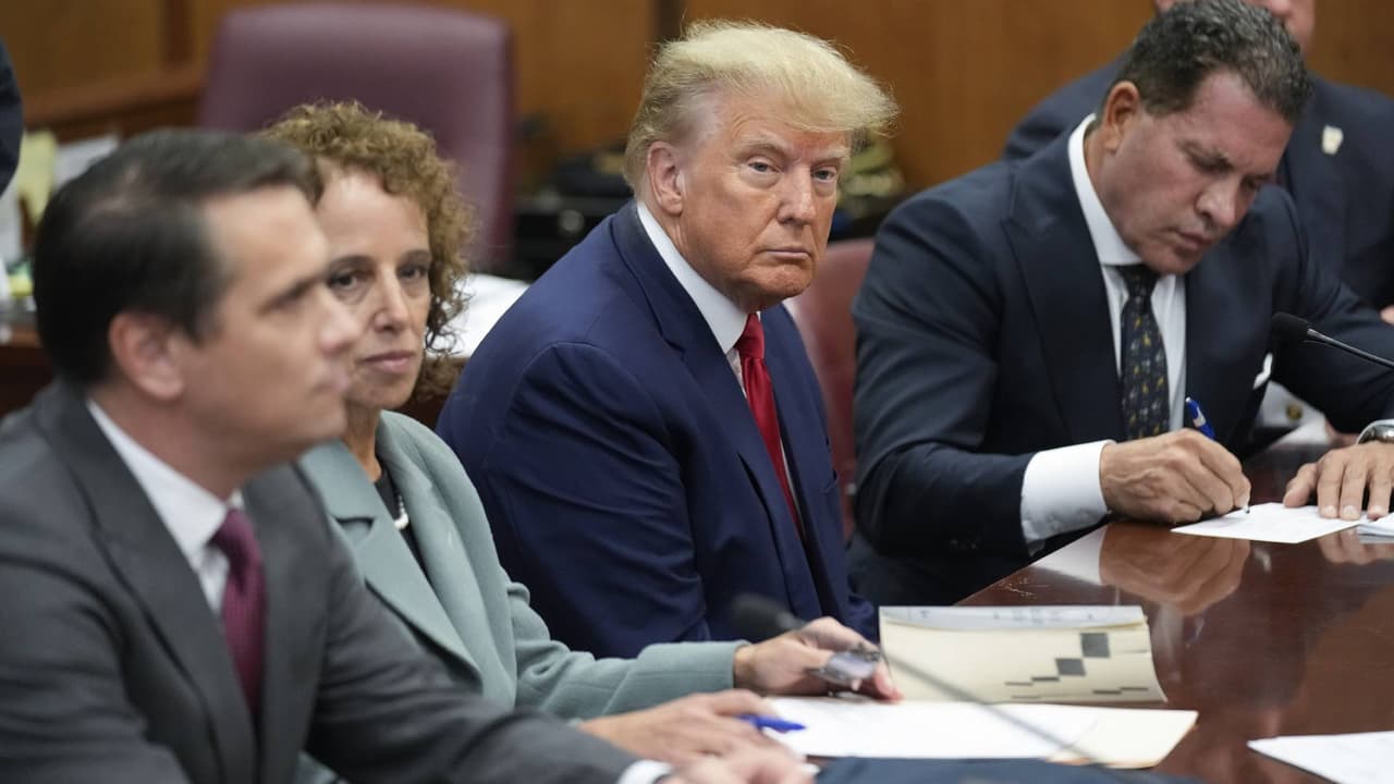 Luego de que le tomaran las huellas dactilares, el expresidente Donald Trump se sentó en la sala asignada del tribunal criminal de Manhattan junto a miembros de su equipo legal para esperar al juez colombiano Juan Merchán, quien oficiará la audiencia donde le leerán los cargos tras su imputación por el caso del presunto soborno a Stormy Daniels.