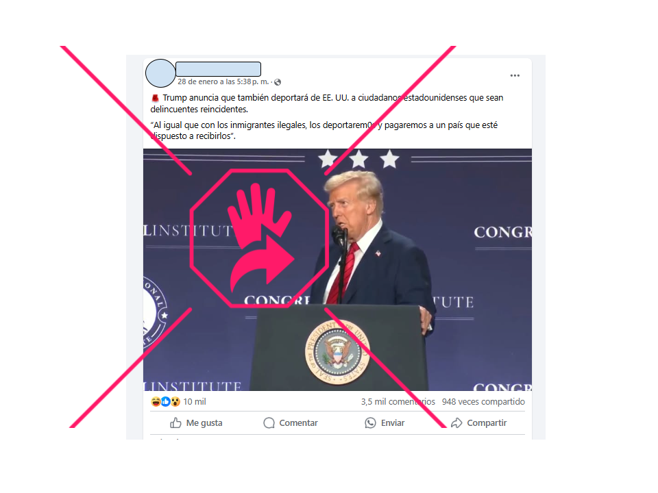 Es falso que Trump haya anunciado que “deportará a ciudadanos estadounidenses que sean delincuentes reincidentes”: eso que dicen en redes NO es así