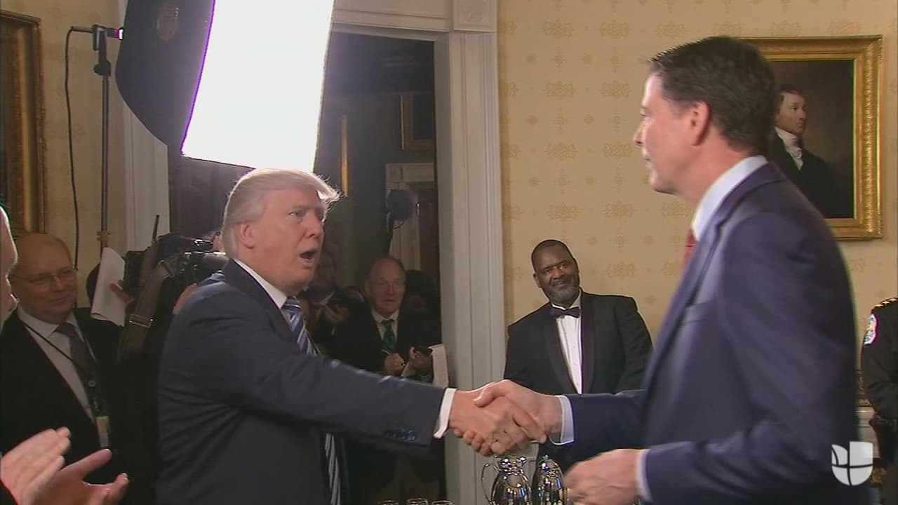 El presidente Trump, realizó el comentario antes de felicitar a Comey por su trabajo y darle la mano.