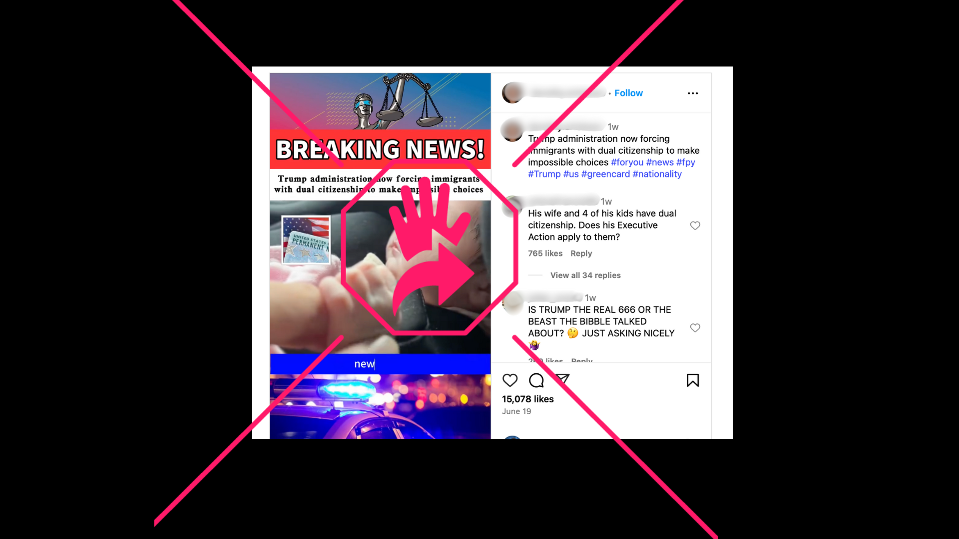 La administración Trump “está impulsando una nueva política devastadora que obliga a todos los ciudadanos con doble nacionalidad en EEUU a elegir un solo país en un plazo de 180 días”, dice el video publicado el 19 de junio de 2025, en el que se muestra una imagen de Trump.