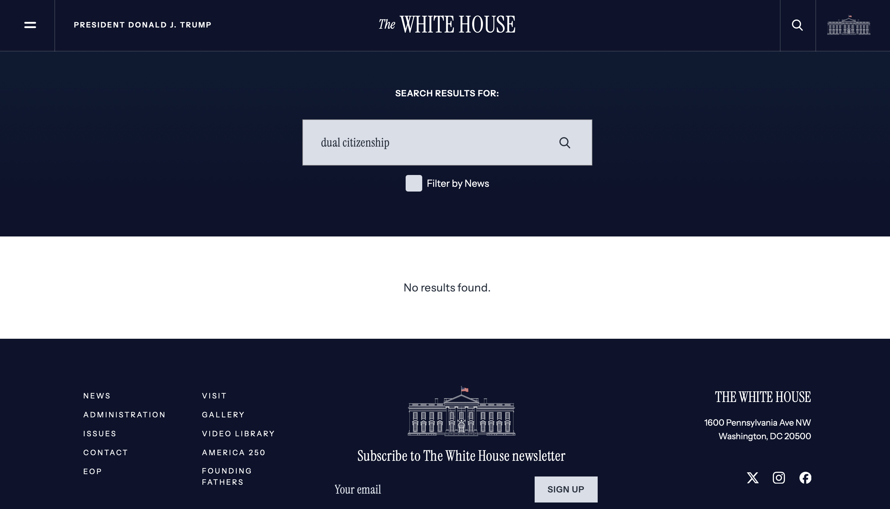 Desde elDetector realizamos una búsqueda en el sitio oficial de la Casa Blanca utilizando las palabras clave en inglés "doble ciudadanía", pero no encontramos ningún resultado que confirmara la existencia de una orden ejecutiva o declaración oficial sobre el tema.