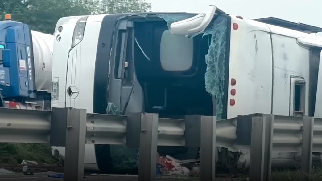 Un camión de pasajeros se volcó en el municipio de Hualahuises, Nuevo León. Se dirigía de Monterrey hacia Tampico. Más información en UnivisionNoticias.com.