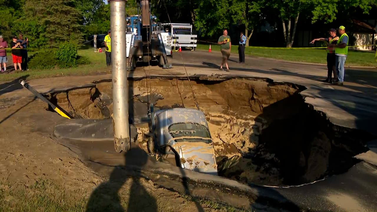 Un agujero en el asfalto se traga a un auto en Minnesota