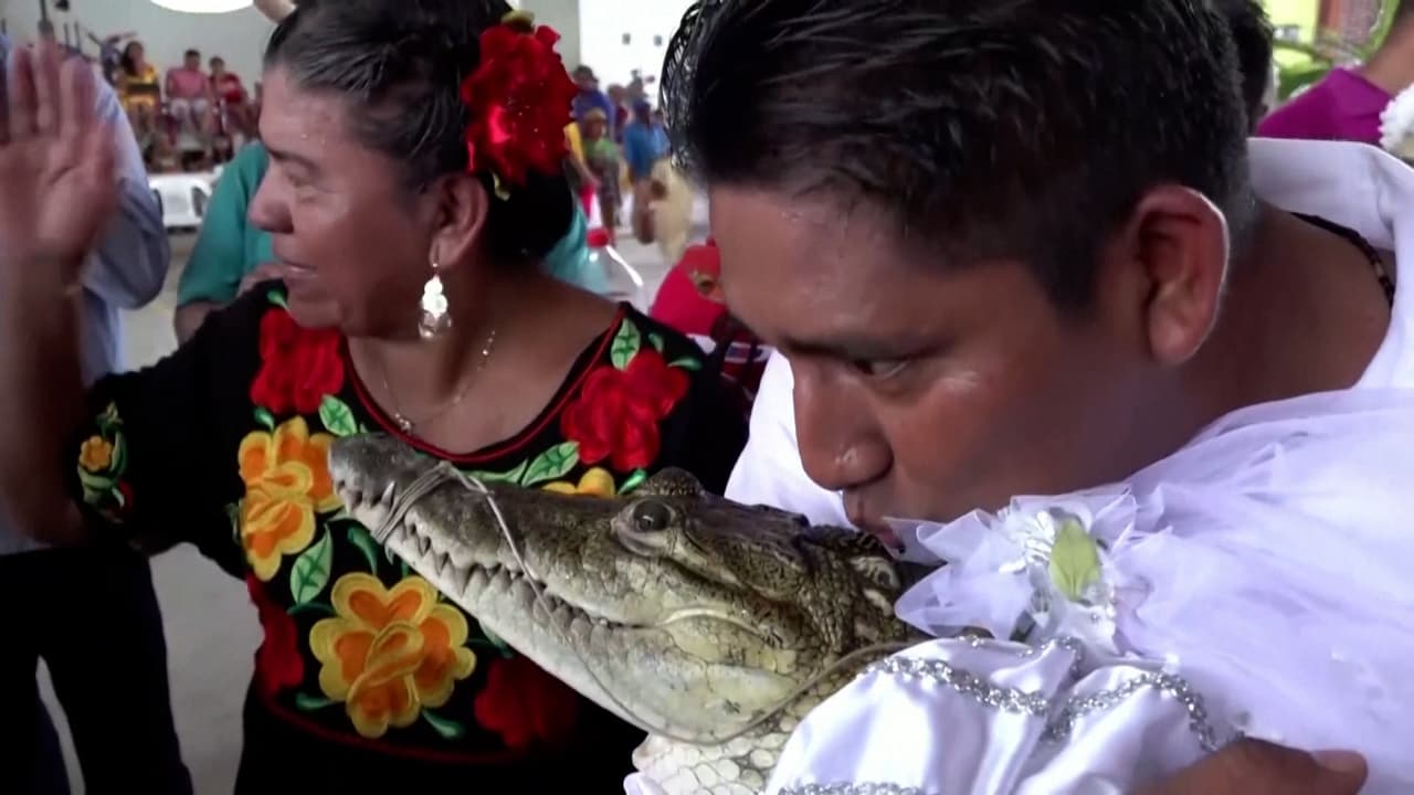 La comunidad de San Pedro Huemelula, en el estado mexicano de Oaxaca, celebró el matrimonio entre el caimán hembra conocido como ‘princesa’ y el alcalde de la comunidad. Esta tradición se remonta a la época prehispánica.