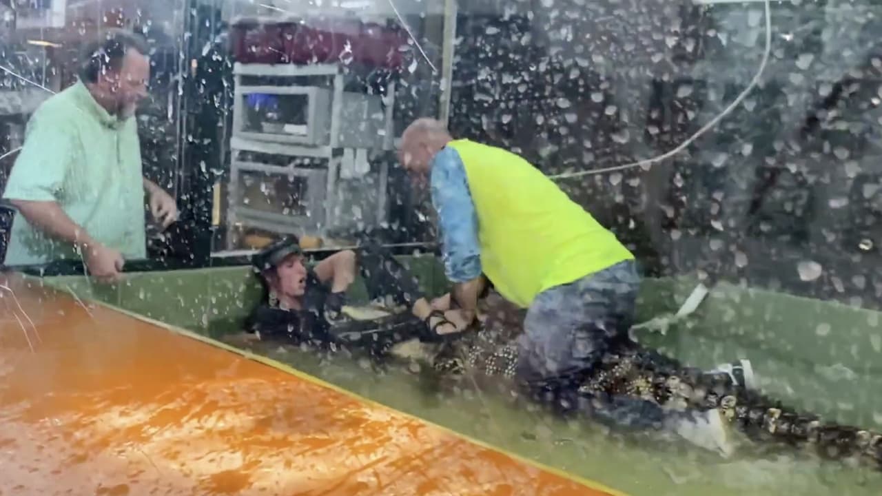 Un caimán ataca a su entrenadora en medio de un espectáculo y un espectador se lanza a rescatarla