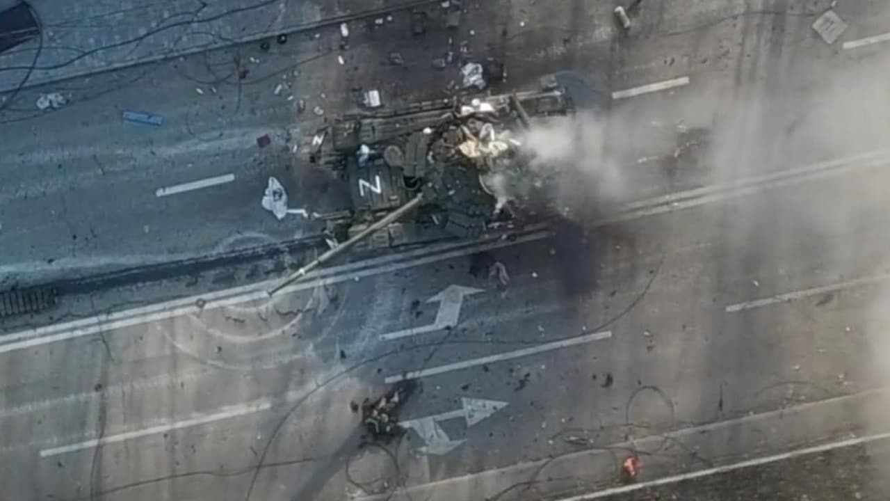 El video difundido por el Batallón Azov de la Guardia Nacional de Ucrania muestra un soldado escapando de un tanque ruso mientras era atacado en Mariupol, ciudad que quedó destruida tras los bombardeos pero que sigue bajo control ucraniano. Más noticias