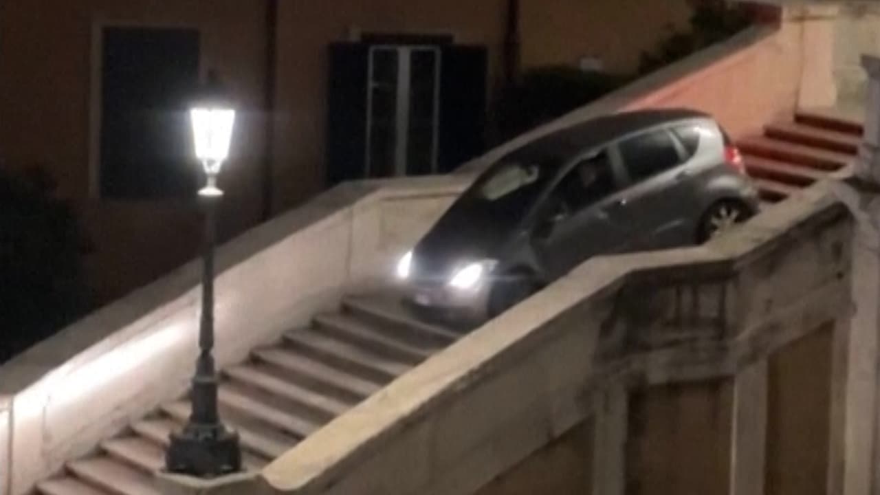 El conductor, que según la policía mostró signos de confusión, trató de bajar en vehículo por las escaleras de la Plaza España de la capital italiana en plena madrugada. Una grúa tuvo que rescatar el auto.