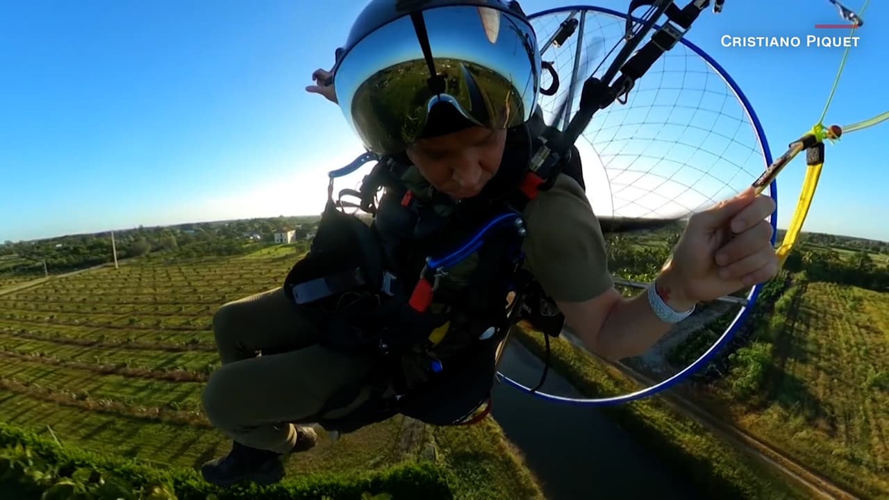 Un hombre que volaba en un paramotor salvó a una mujer que cayó a un canal con su auto, y lo captó todo en video