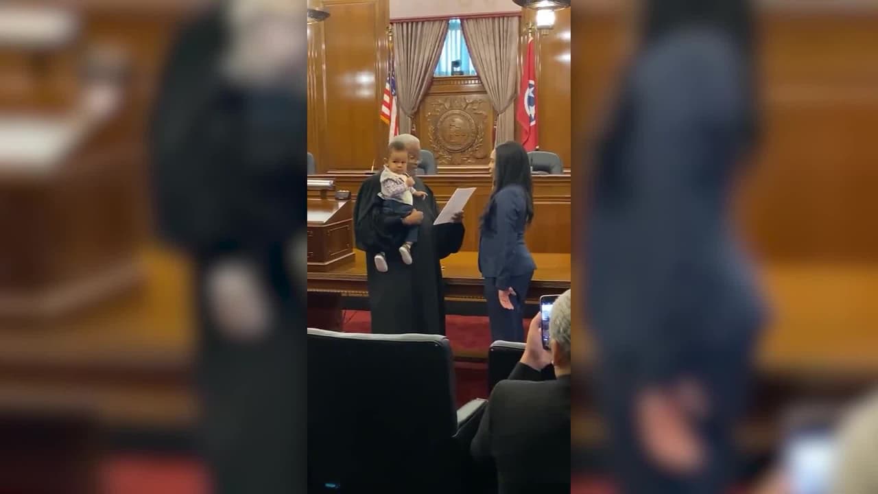 Juliana Lamar quedó embarazada durante sus estudios de derecho y el bebé Bekham de un año la acompañó en su proceso para convertirse en abogada. El juez que la juramentó decidió que el pequeño debía ser parte del momento y dejó una tierna escena en los juzgados de Nashville.