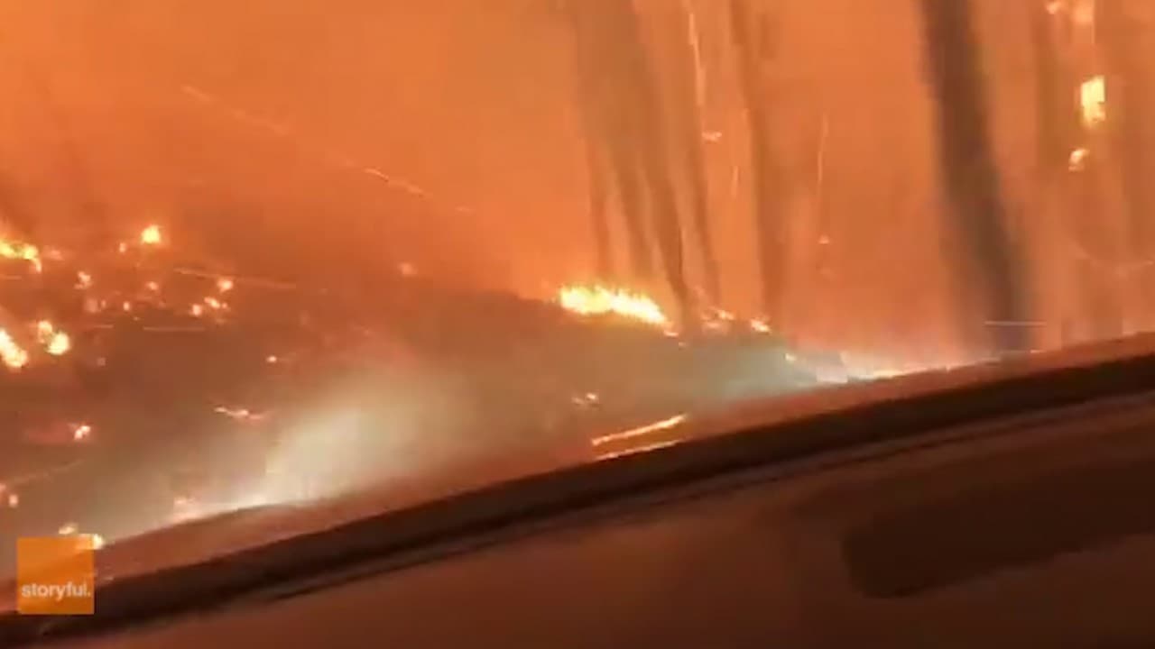 Un padre y su hijo conducen por 'un infierno' para escapar de las llamas