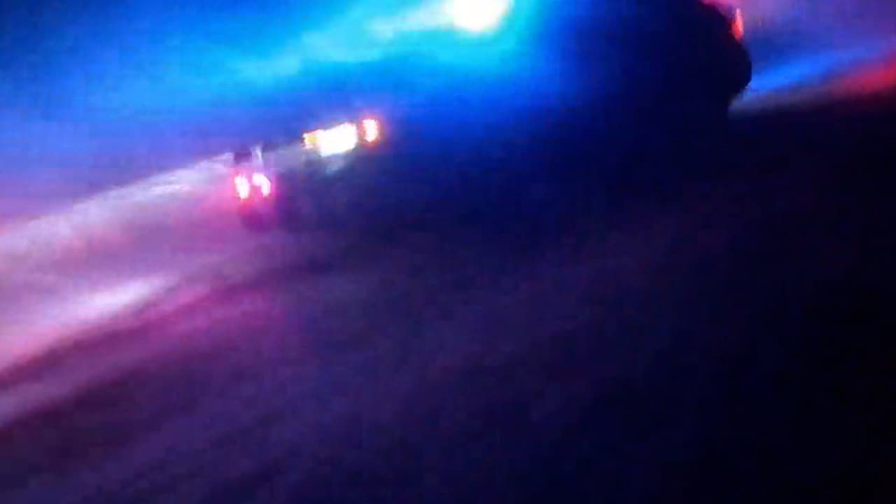 Un policía atraviesa la tormenta invernal para llegar a su patrulla en Nebraska durante la ‘bomba ciclónica’