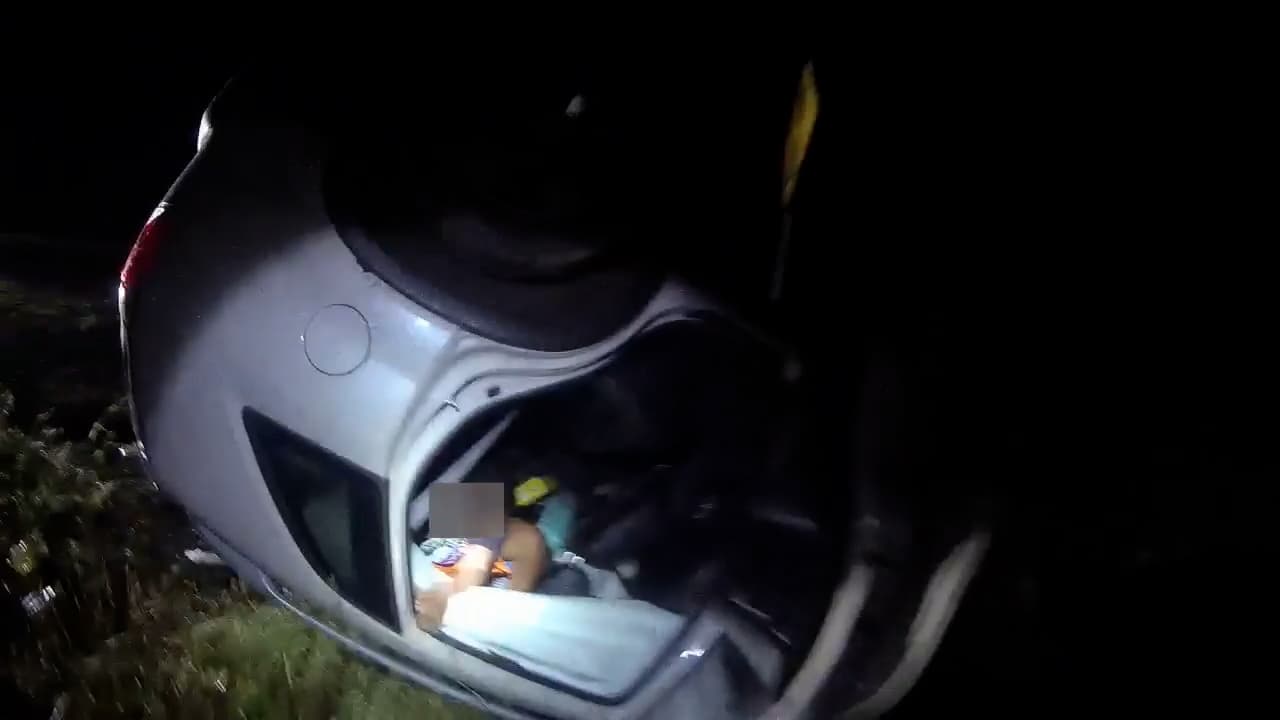 El oficial Jon Holt llegó al lugar donde el auto estaba volcado y encontró a un menor de edad gritando dentro, junto a una mujer que no podía salir del vehículo por sus propios medios. Más información aquí.