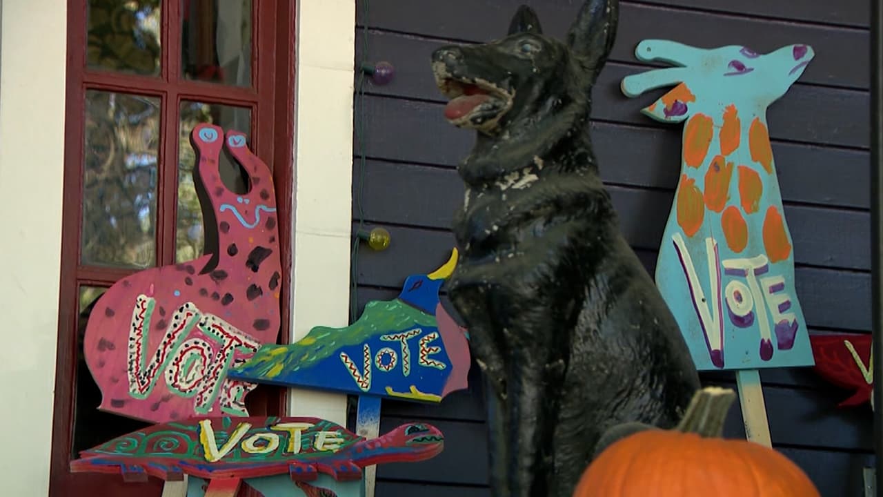 Paul Collins comenzó a pintar sus letreros en 2020 con el fin de que la gente se motive a votar y ahora los regala con la condición de ponerlos frente a las casas para esparcir su mensaje.