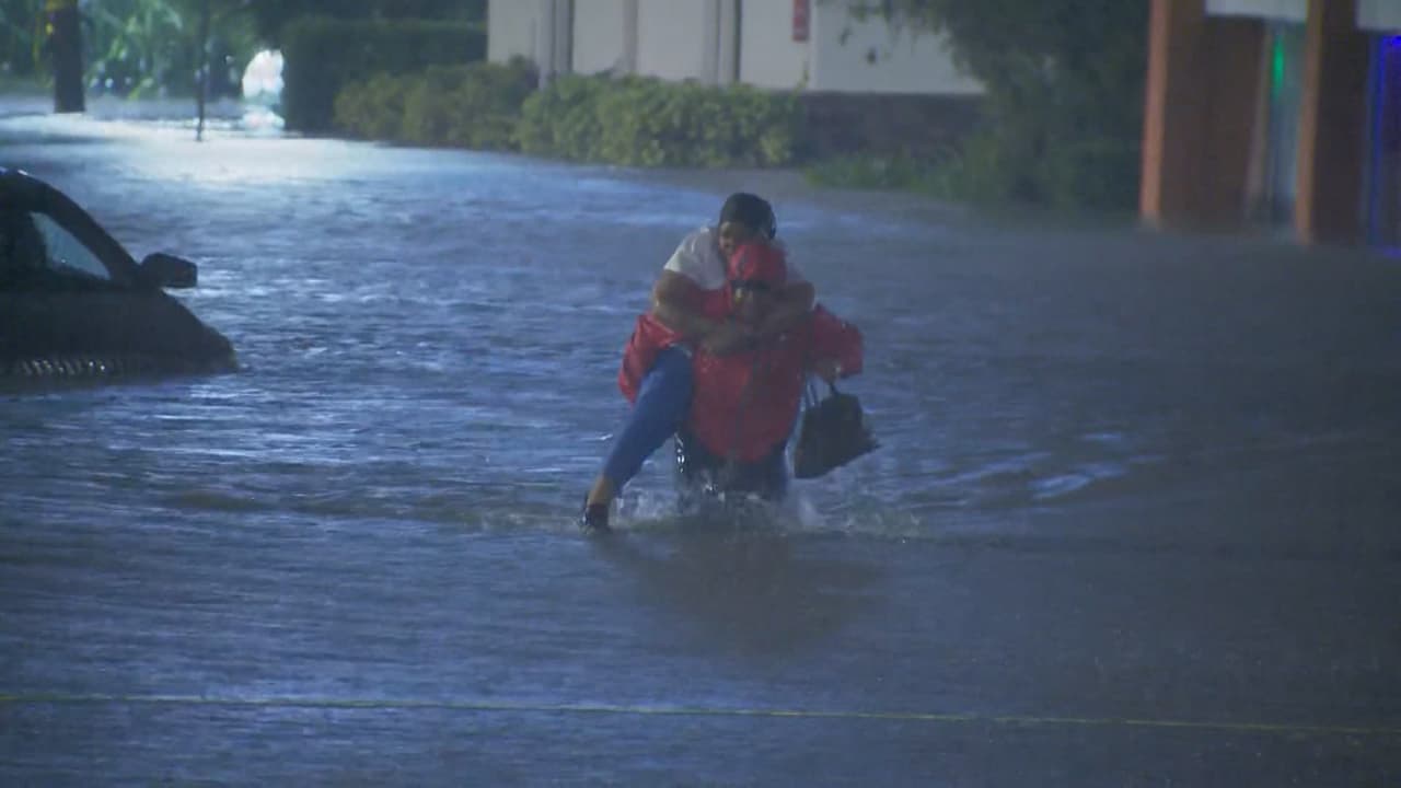 El reportero Tony Atkins, de Wesh Two News de Orlando, rescató de su auto a una enfermera que quedó atrapada por una inundación ocasionada por las fuertes lluvias de Ian, que en ese momento avanzaba como tormenta tropical.