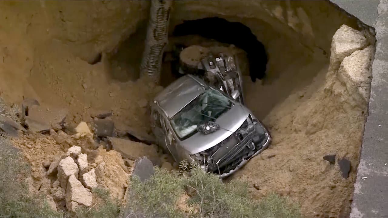Un socavón de 15 pies de profundidad se traga a dos autos y a sus pasajeros en California