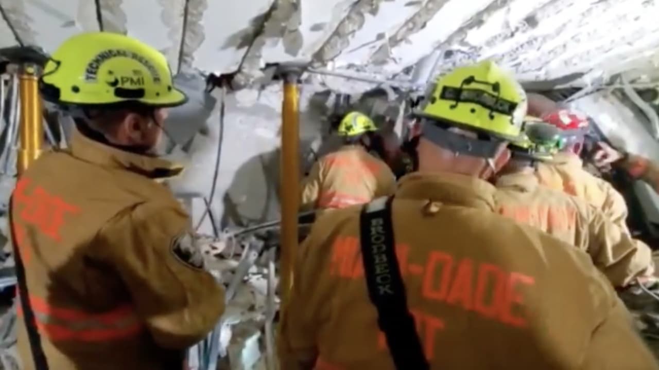 Un túnel bajo los escombros: las operaciones de rescate en el edificio colapsado al norte de Miami Beach