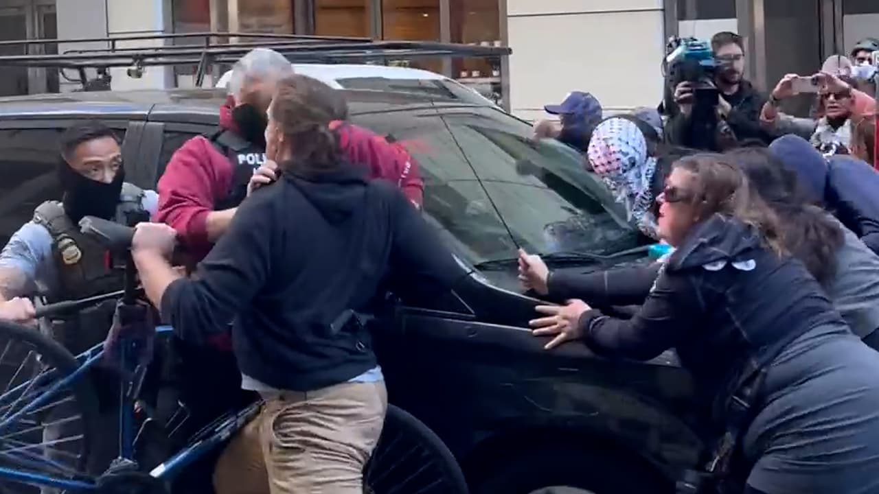 Un vehículo de ICE arrastra a manifestantes durante fuertes enfrentamientos en San Francisco