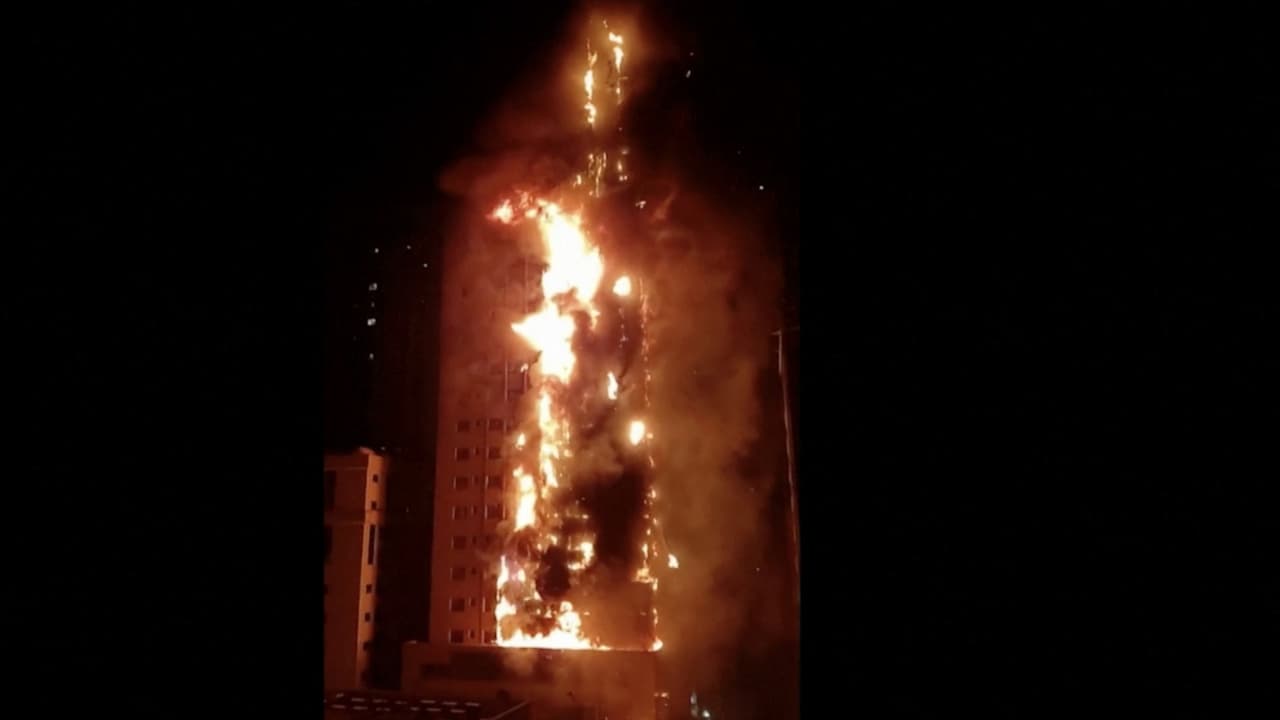 Un voraz incendio convierte esta torre residencial en una antorcha de fuego