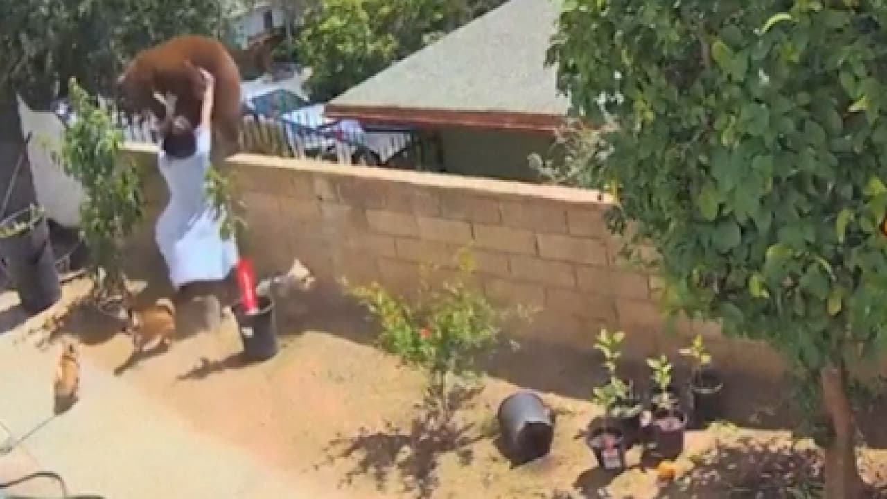 Hailey Morinico, de 17 años, se encontró con la mamá osa y sus dos cachorros, mientras trepaba el muro de su patio en el sur de California. Más noticias aquí.