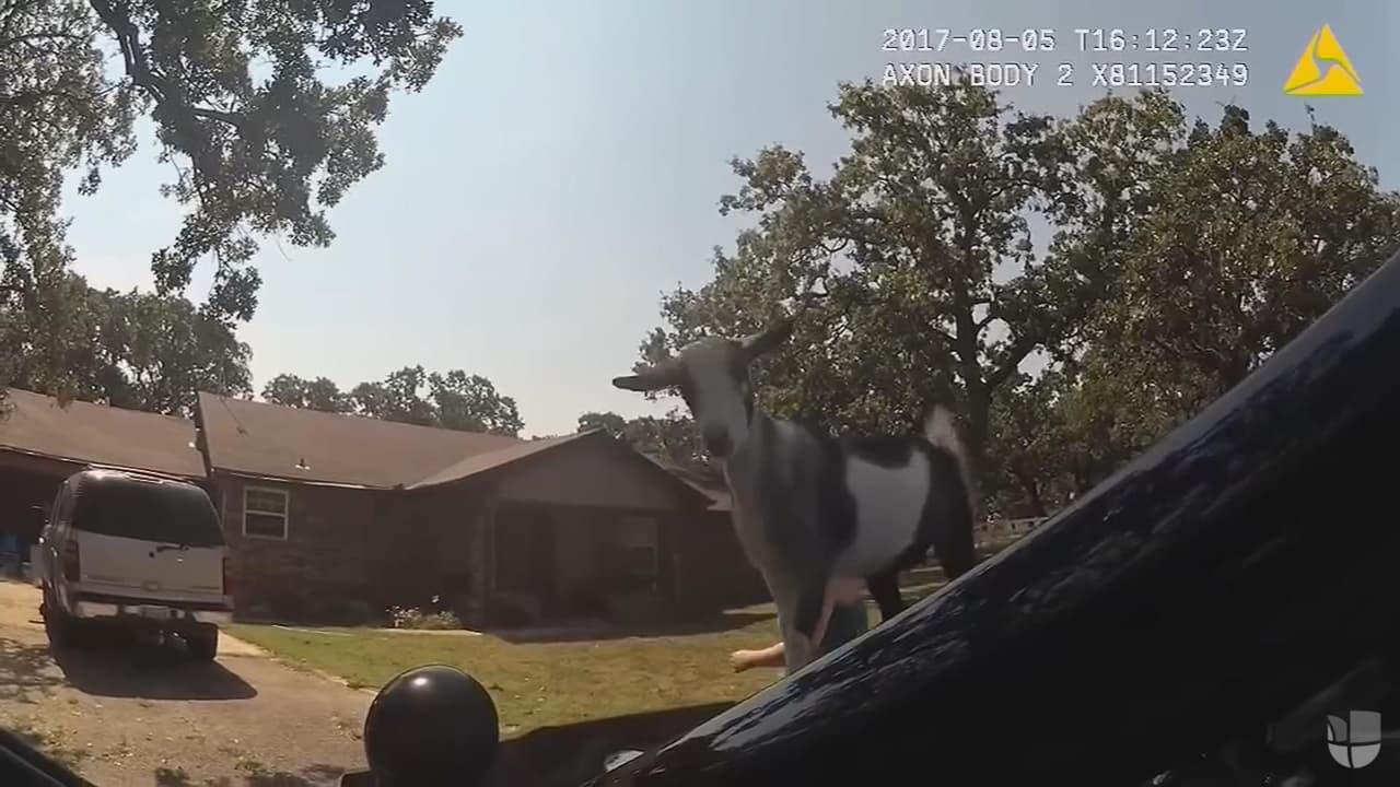 Esta cabra no le tiene miedo a la fuerza del orden. Al contrario, se subió al auto de este policía en Oklahoma e hizo falta la ayuda de un vecino para sacarla.