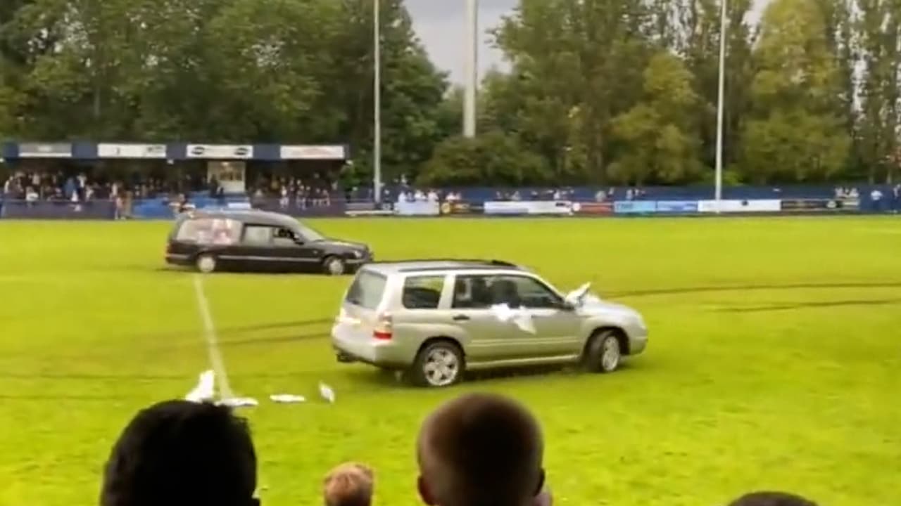 Una carroza fúnebre entra a la cancha de un partido de fútbol y causa pánico