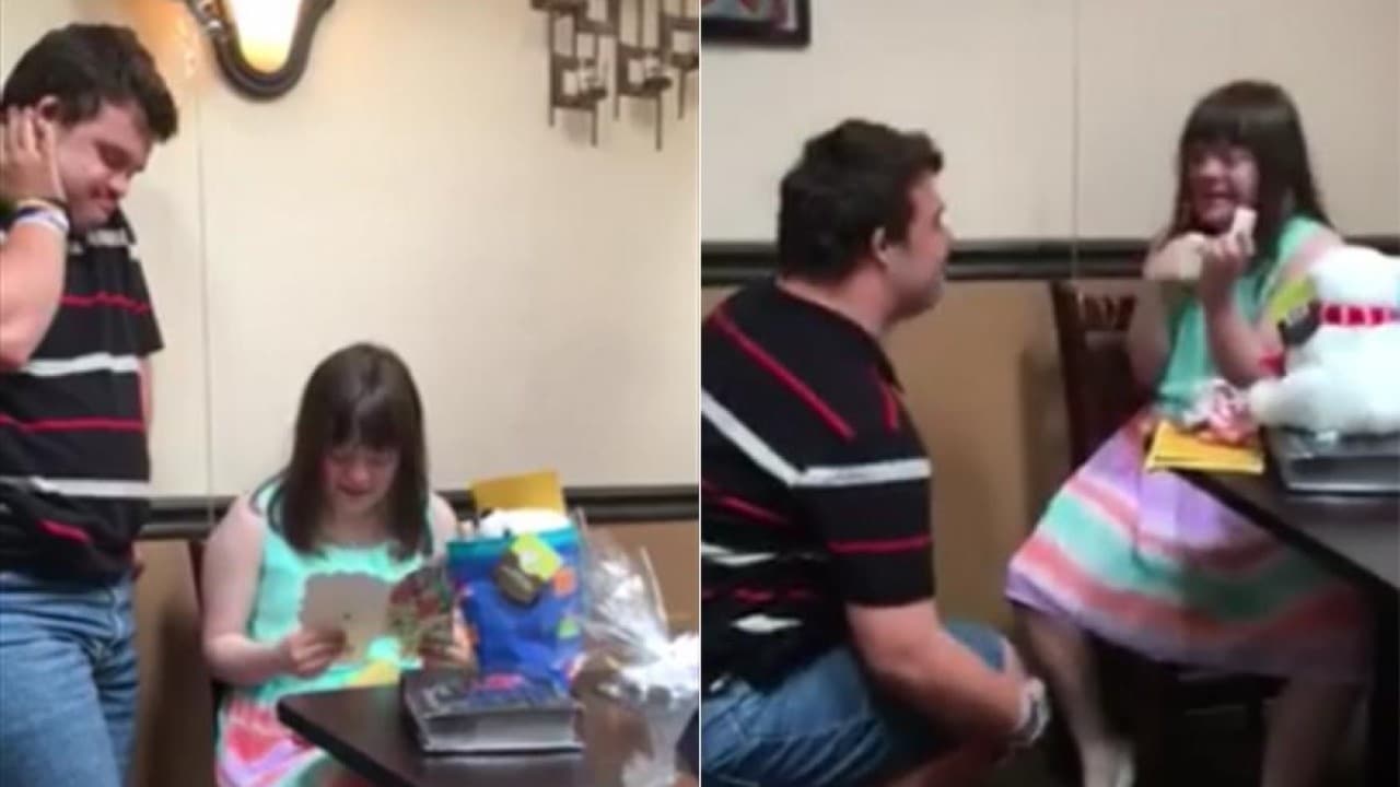 El video muestra a Danny Griffiths, con su novia Ashley Greenhalgh, ambos con síndrome de Down, en su cumpleaños 21, en el que recibió entre tantos regalos un anillo de compromiso y una propuesta que se ha convertido en viral en las redes sociales.