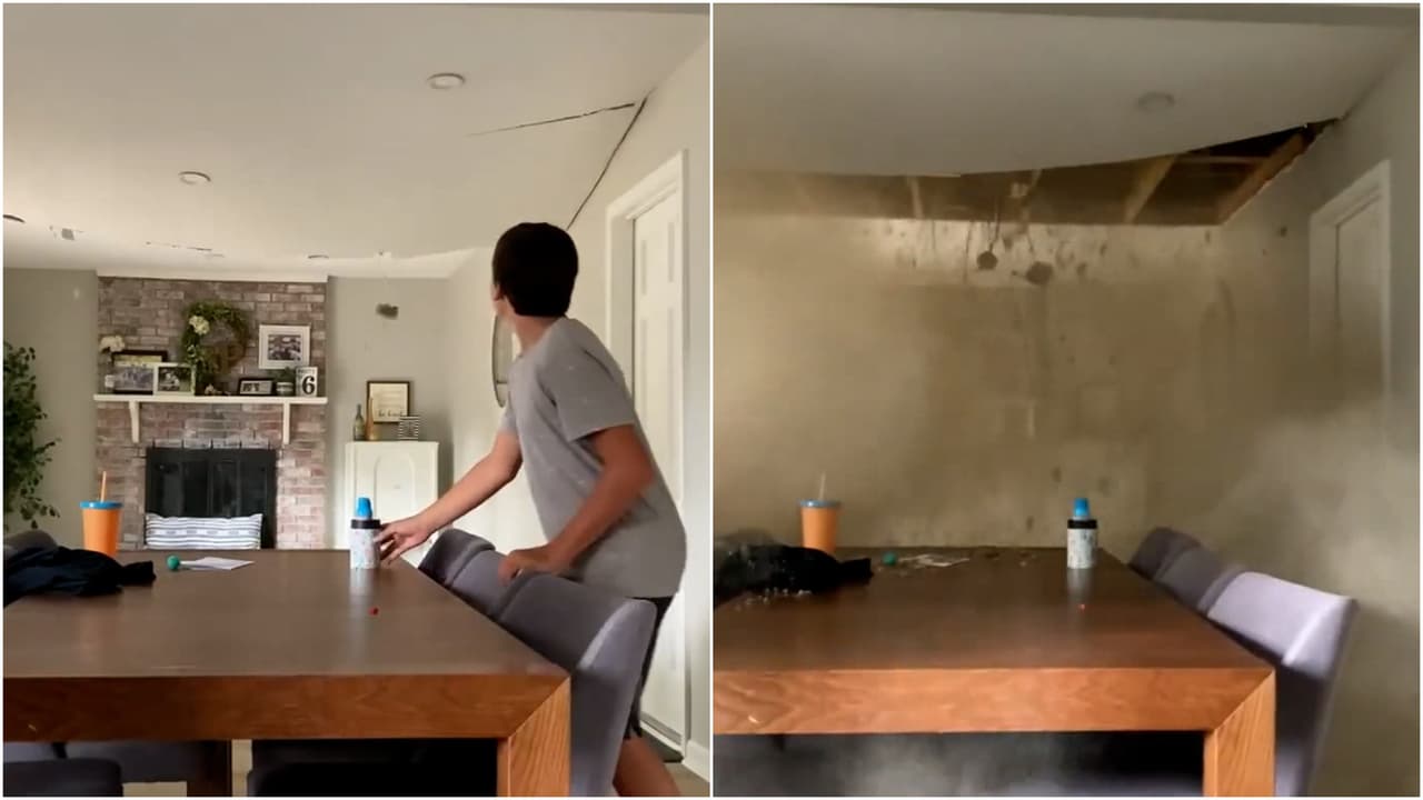 Una familia en Virginia graba en video el impresionante colapso del techo del comedor
