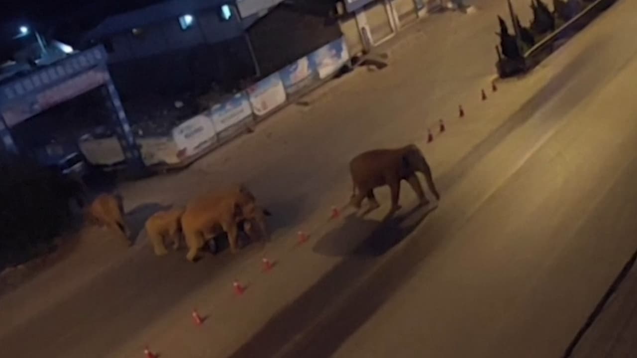 Autoridades en el sureste de China despejaron calles y carreteras para bloquear el camino que habría llevado a los elefantes a las áreas residenciales. Los animales están migrando desde diciembre hacia el norte del país.
