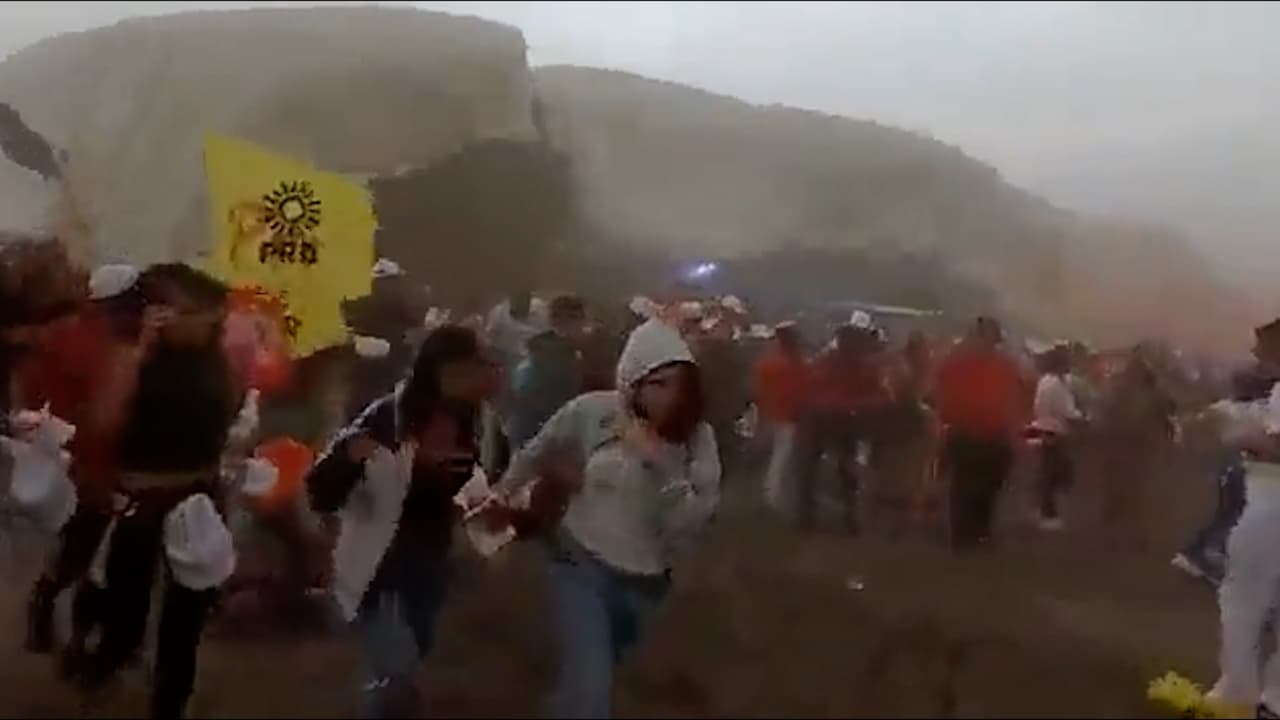 Una mujer de 84 años falleció y varios resultaron heridos: fuertes vientos derrumban una lona durante un mitin político en México