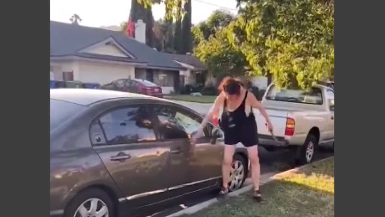 Una mujer golpea con martillos el auto de un hispano y le pide que regrese a México