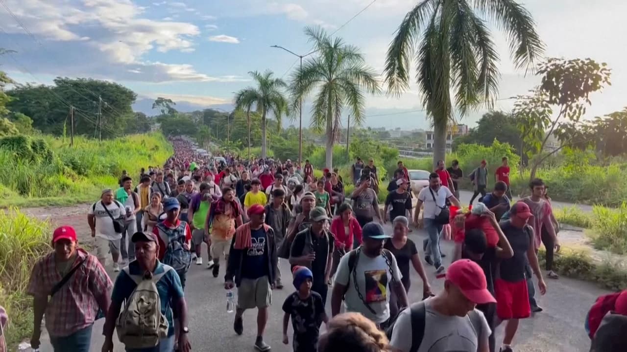 Alrededor de 5,000 migrantes se dirigen a la frontera sur de Estados Unidos desde el sur de México. Protestan por la falta de visas humanitarias.Más noticias de inmigración en Univision.