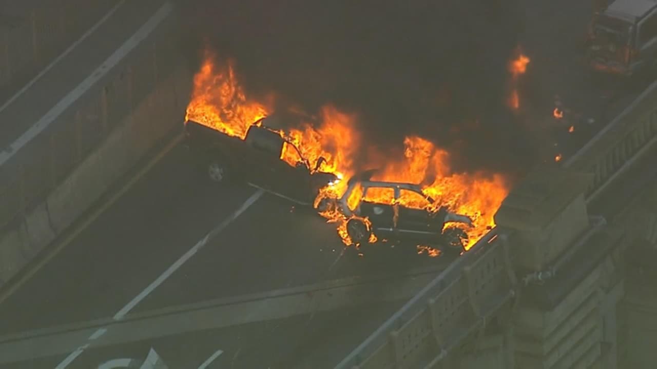 El accidente ocurrió en dirección a Brooklyn alrededor de las 7 am y poco tiempo después los bomberos apagaron las llamas.