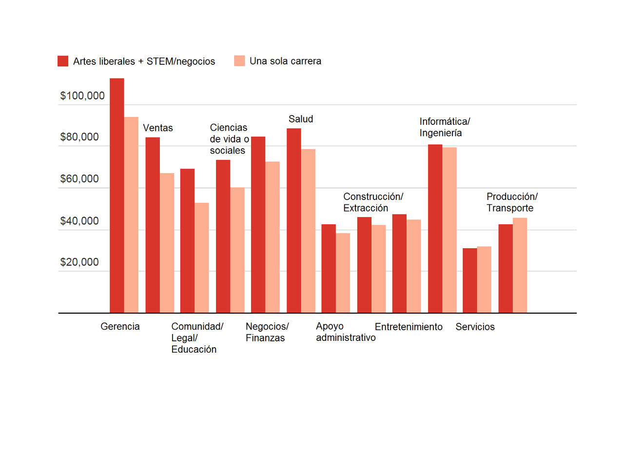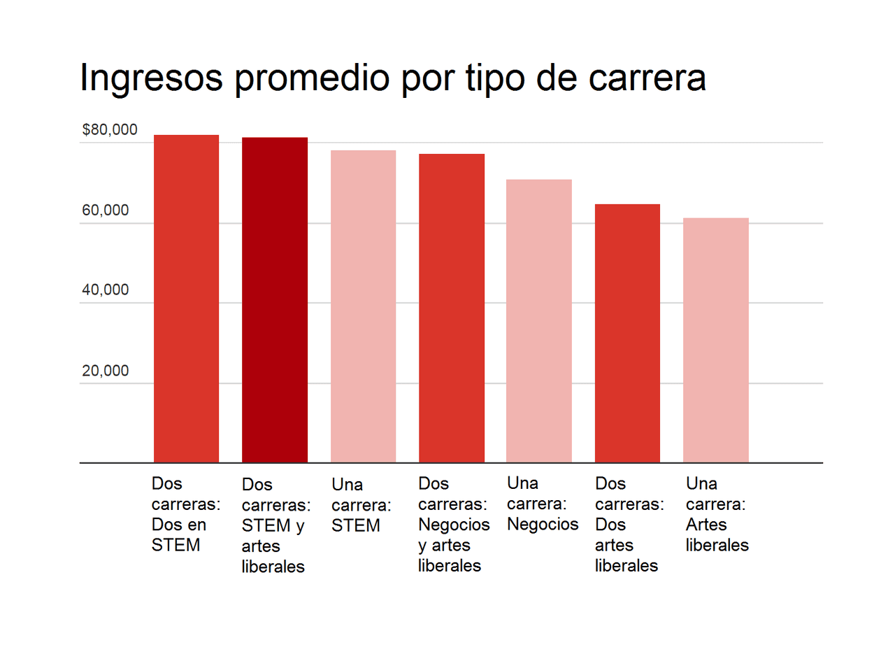 Los resultados mostraron que los estudiantes de artes liberales que adquirieron una segunda licenciatura en el campo de las STEM ganaban, en promedio, 9.5% más que sus compañeros en artes liberales con sólo una licenciatura, después de controlar los factores demográficos individuales, tales como edad, años de escolaridad, estado civil, género, tamaño de la familia y raza. Los estudiantes que combinaron una licenciatura en artes liberales con una licenciatura en negocios ganaron un 7.9% más.