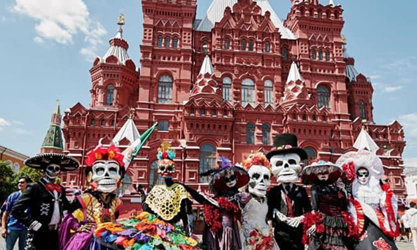 La tarde del 29 de junio una estampida de hombres y mujeres sonrientes, disfrazados con trajes típicos mexicanos, irrumpió en la Casa de México en Moscú. Bailaban y exhibían sus disfraces ante el aplauso de turistas de varias partes del mundo que acudían a Rusia al Mundial de Fútbol.